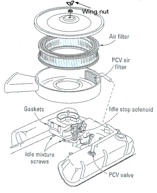 be prevented from entering the engine. The air filter and positive crankcase ventilation (PCV) valve are important parts of your vehicle's fuel system. The air filter provides clean air to a vehicle's carburetion system, and if it becomes clogged or dirty, it can cause your car to idle or run roughly and reduce gas mileage. The PCV valve helps prevent the release of gas fumes from the engine. If it becomes blocked or clogged, it can cause oil leaks and promote the formation of sludge in the engine