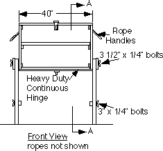 Materials List and Cutting Guide: 1 sheet 3/4" Plywood (4'x8') (* save scrap for nailing strips) 2 - 8' - 2" x 4" (Legs & Socket Blocks) 1 - Heavy Duty Piano Hinge 1 - Hasp Set 4 - 3 1/2" x 1/4" bolts 4 - 3" x 1/4" bolts 8 - 1/4" wing nuts & washers Plastic vaneer for interior Rope for Handles Rope or chain for drop front