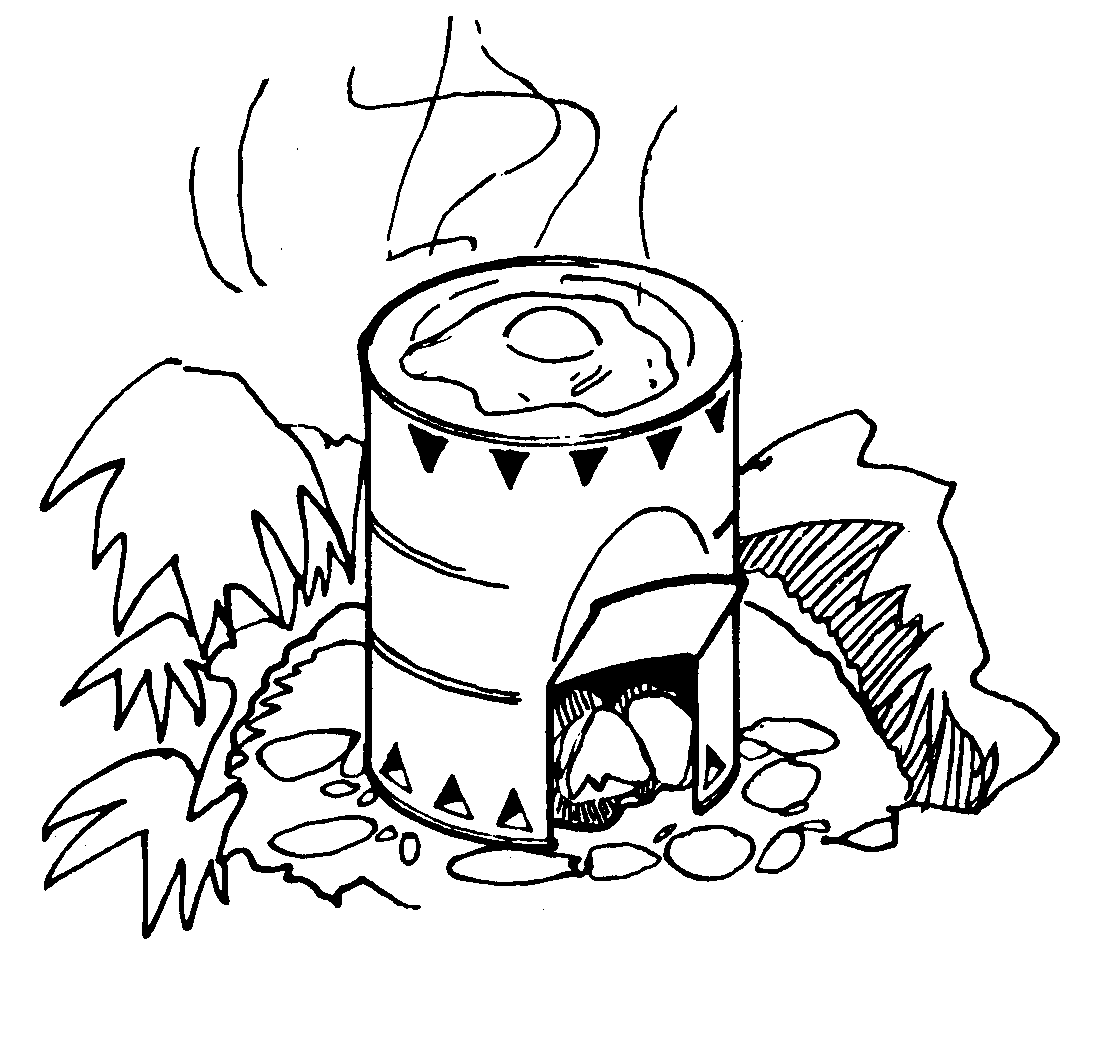 itself. It can be used to boil water, fry hamburgers or bacon, toast bread or bake small items. Supplies: