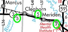 - IA 17: Black mileage between US 18 and IA 3, split at