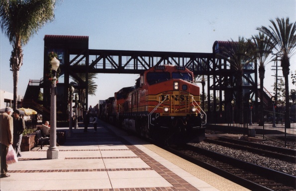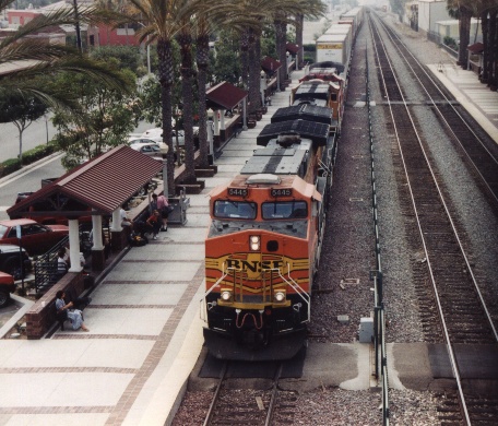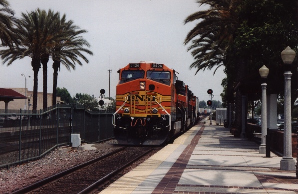 This is the Swift Roadrailer, which runs once a week on BNSF. It must normally run at night, because this is the only time I've seen it at the station.