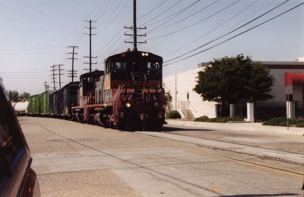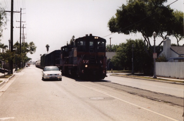 The Costa Mesa Local is returning to Anaheim Yard, passing Ohio St.