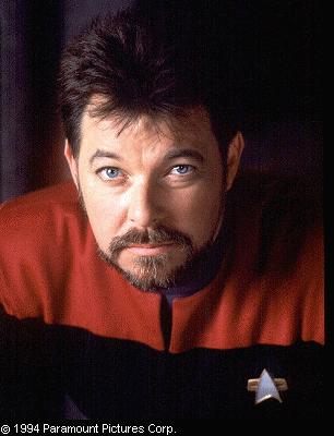 Executive officer of the Starships Enterprise-D and Enterprise-E, Will (or more rarely, Bill) was born in Valdez, Alaska in 2335. He graduated the Academy in 2357, ranked eighth in his class - and as of 2369 he'd been decorated five times. His first assignment was to the USS Pegasus (NCC-53847), an Oberth-class vessel, which disappeared mysteriously in 2358. At some time he was stationed on the planet Betazed, where he met psychology student Deanna Troi, enjoying a brief romantic affair with her. Will left Betazed to join the crew of the USS Potemkin (NCC-1657), and later became executive officer on the USS Hood (NCC-42296). He joined the crew of the Enterprise-D in 2363. He refused command of three starships (USS Drake, USS Aries and USS Melbourne) in order to stay on the Enterprise - though he was given a field promotion to Captain in 2366, when Picard was assimilated by the Borg. He is also known as 'Number One' by a select few, and since the commissioning of the Enterprise-E he has again become involved with Deanna Troi. Some women have all the luck! What's a knockout like you doing in a computer-generated gin-joint like this? -- "11001001"