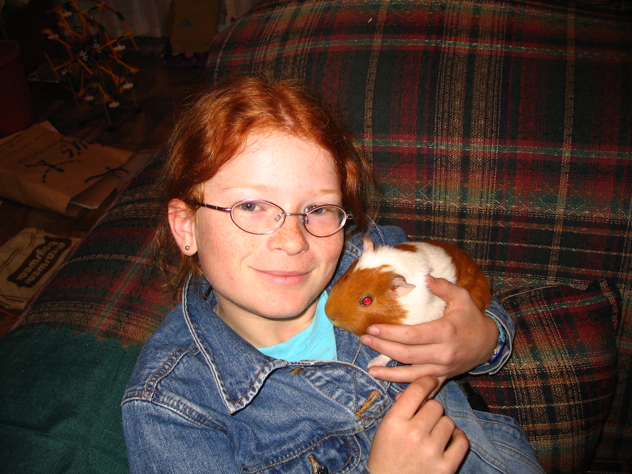 Hi. My name is Katrina and here is a picture of me with my guinea pig called Jinny.