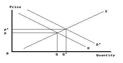 doméstico." Esta afirmação prediz a elevação do preço do vinho de Ontário por causa de: