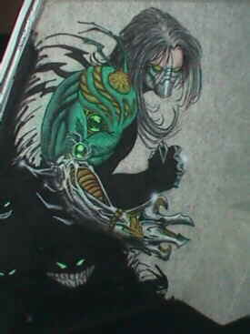 3 - 10w6's in plexi lined with mirror and aqua neon. Chrome Memphis Belle Amp.