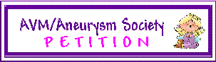 | This page is dedicated to my cyber friends who support our group so willingly. It is dedicated to those patients with a congenital birth defect called an AVM (Arteriovenous Malformation) as well as all of the aneurysm patients throughout the world. Amazingly, there are only approximately 3 out of 10,000 of the population born with an AVM (.03%). I have included hyperlinks on information available on the web including an Aneurysm and AVM Support Page, information on AVM's, Aneurysms, Strokes, Brain Surgery and more. |