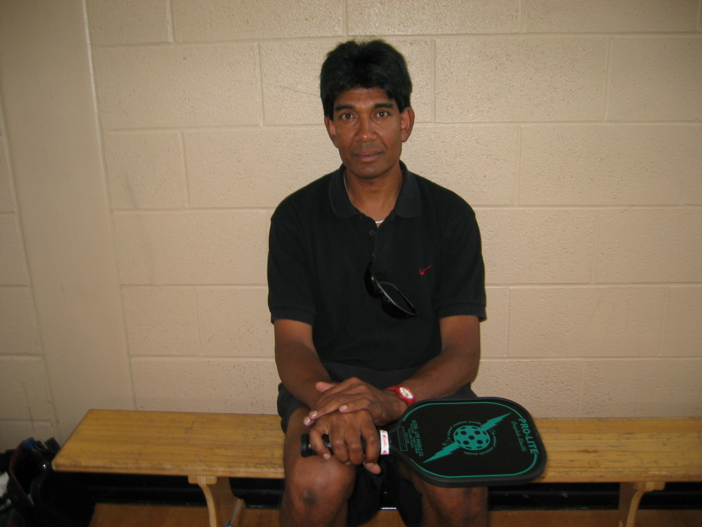 Jim is not only a talented player, but so enthusiatic about this game that when no other courts are available he will play outside on tennis courts, marking the lines with masking tape. He tries to get anyone he can to play and if you try to make the excuse that you don't have any equipment, he will sell you a paddle or some balls out of his gym bag.