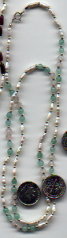 As you can see by the dime, these images are slightly smaller than actual size. All these necklaces are at least 18 inches, and some are as long as 22 inches or more. When I make necklaces, I like to make them at least long enough to fit over my head with some room to spare. That way you don't need to bother with the clasp.