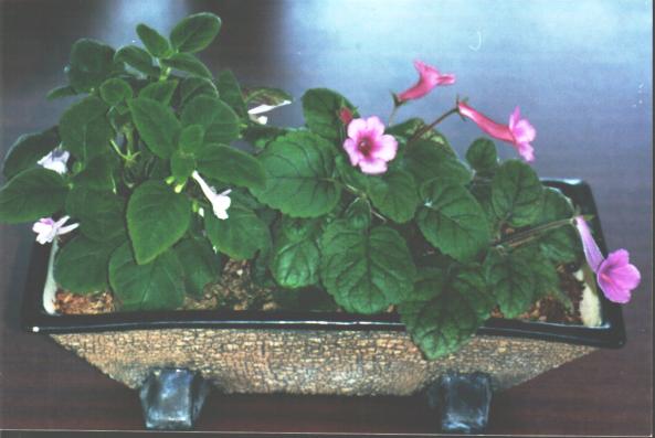 Mini Sinningia Pink Imp, S. Xanadu, S. Paper Moon in Planter