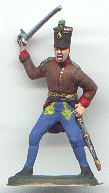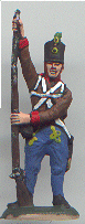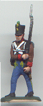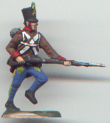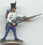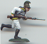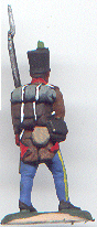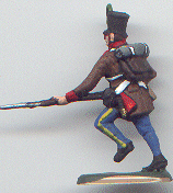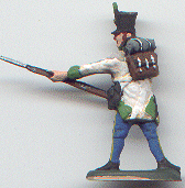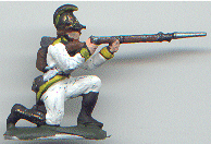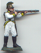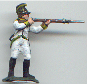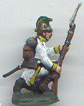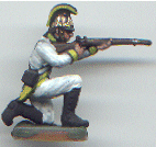 The Austrian infantry began the period in funny little round hats with a false front. Thankfully for aesthetically minded wargamers, the army adopted a classical style helmet in 1798. Each regiment had a different facing color, displayed on cuffs, collar, shoulder straps, and turnbacks. Pants varied from unit to unit: units raised in Hungary wore blue ankle-length trousers with yellow braid on the fronts while units raised in Austria proper (the so called "German" regiments) wore white gaiters.