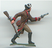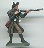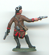 The Revell set is gorgeous, one of the best of their line. There are fifteen poses, and all but one are very useful. The exception is Ben Franklin - why does Revell want us to risk his valuable life on the battlefield? Contrary to popular opinion, the militia did have uniforms. New England units typically had brown jackets with red facings, buff stockings, and gray overcoats. I don't think I need to say much about the quality of these figures - the scans speak for themselves.