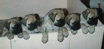 Ch Powerbulmas Diditagain, Ch Powerbulmas Diptingold, NZ Ch Powerbulmas Delight and litter mates.