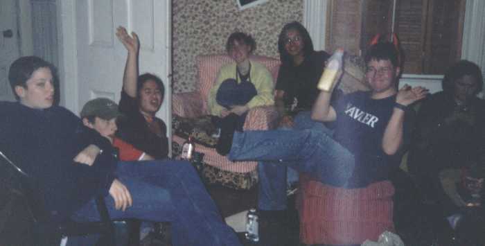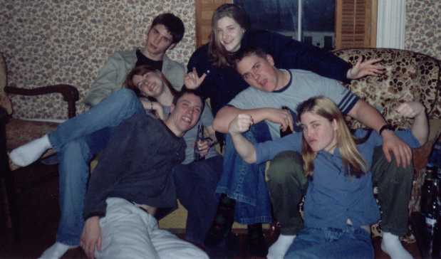 Adrian, Me, Cindy, Greg & Becky all squished on Joe's Bed