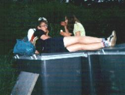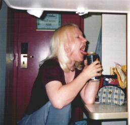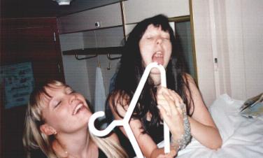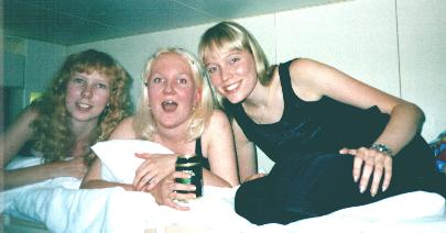 Starting from left->Hanna (Lollo),me tha Queen Whateva Kat (what the hell is that thing I am holding?Oops!) and another Hanna (Pelzi).Taken in our cabin on our way to Sweden on July 15th.