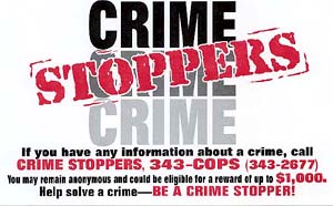 Your support and participation does help solve crime. Fight back! Be a Crime Stopper!