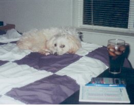 All of us kids Labor Day 2001 & Rascal wanting to play yahtzee too!