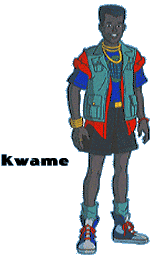 Kwame is the convservationist of the group. From Africa, he has seen forests turn into deserts and wildlife disppear. Kwame's intefrity brings quiet