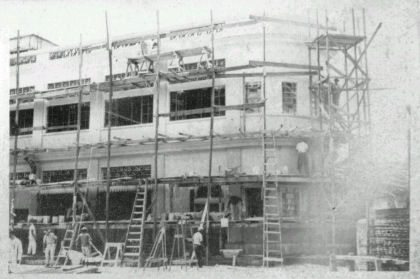 C001 - Obra em Fevereiro de 1963, com a antiga capela ao centro |
