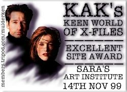 To get this award, just email me your web site address. That's all I need---I'll get back to you as soon as possible. To win, your website must be X-files related, and non-offensive.