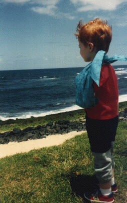 this photograph, Jeffrey looks out to the waves ....sorry that he can not