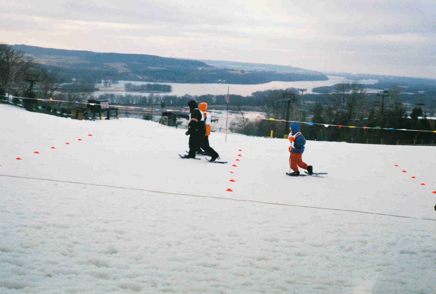 Jer, who, for various reasons, isn't fast, ended up in a division of one. In the four non-practice races he ran this year, his final 200m is the only one where he fell. He was almost to the finish line, so he gave up on using his ski pole and carefully walked the last ten meters. During practice, he had been taking about a minute to stand up again once he'd fallen. Not this time! Jer quickly got up and finished!