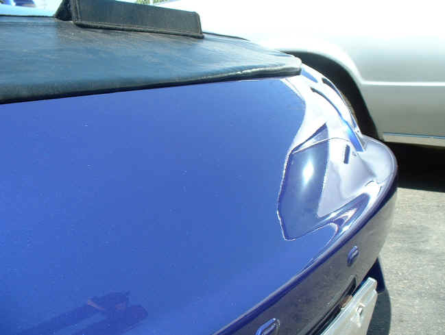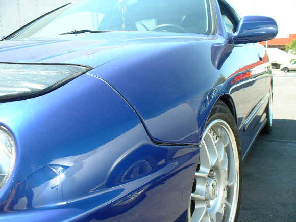 All Fixed August 7th: ahh i can't believe this is what $1330 + 212 looks like.. noo.. i swear.. she's a whole new car again. cept minus the front emblem holes.. darn i should have shaved off the license plate holes. i'm happy happy.. see the bad page to see what she used to look like..