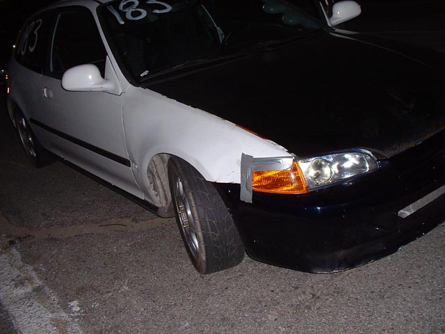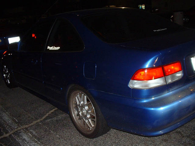 Thurs 1/31/02 Car Clean & Foglights Install: Spent 3 hours on the wash, polish, wax job for my teg.. undenting the hood..yea.. someone stupid decided to land their backpack on it last year(jerkoff).. yea i neglected the interior again.. but at least my car is clean.. then had to do two sets of factory foglight installs for 99 civics.. i got to do the wiring.. which only my hands would fit underneath the power steering reservoir and behind the windshield fluid reservoir.. fun stuff ey.. well that's my 2nd and 3rd 99' Civic foglight install and counting.. it was real cold.. now i'm sick and germy.. what a great way to start midterms.. hope i'm better for another go at Palmdale Friday Feb 8th..