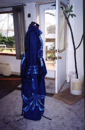 I created two versions of this gown. They were both made from beautiful rich Midnight Blue Velvet and the skirts were made from blue satin. The gown is actually two separate pieces.