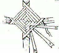STEP 3: To make the ribs of the basket use #6 round reed. Cut ribs as designated in the diagram below. Sharpen the ends of each rib with a pencil sharpener. Insert the ribs in the pockets formed behind the God's eyes.
