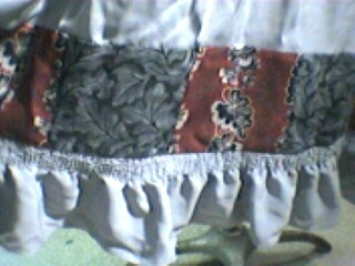 Here are some pics of the dress I designed for Heather. It is a combination of two patterns which I adjusted. The ruffle on the bottom was made from a length of fabric which I pleated as if I was going to smock it, but then pulled it loose and then did decorative machine stitch overtop. Again the pictures had too much light and I didn't get them focused too well.