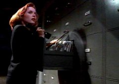 .. from the previous episode. The stand-off between Scully and Skinner continues, in the fight for the stolen DAT tape. Someone is at the door, and the door suddenly opens. Stepping inside the room is none other than - - Mulder! He orders Skinner to drop the gun, which Skinner does as he is outnumbered. He then pulls out the DAT tape containing the secret government files, realizing that the tape is the only evidence that he, Scully, and Mulder have of brining Bill Mulder's assassin(s) to justice. He insists on keeping the tape himself, as if Mulder or Scully should be caught then it would be lost. Meanwhile, Mulder and Scully examine a photograph given to them by Teena Mulder of some of Bill Mulder's government colleagues from his younger days. They enlist the help of the Lone Gunmen, who are able to aid them in identifying a man in the photo known as Victor Klemper. Klemper, a Nazi War criminal, was a participant in Operation Paper Clip - a government operation which provided a safe haven for war criminals in exchange for their scientific knowledge. Scully then learns that Melissa is in critical condition in hospital after she was shot by Alex Krycek and Luis Cardinal. But Scully fears an ambush by assassins or government operatives, and so she joins Mulder in locating Victor Klemper. They manage to contact him but they get next to no information out of him - except that the photograph was taken at the Strughold Mining Company in West Virginia. He tells them of Napier's Constant, the base of all natural algorithms. Mulder and Scully pay a visit to the mine, and they discover metal doors which are built into the walls of a mountainside. They gain access into the electronic doors by entering Napier's Constant into a keypad next to them. Inside the doors, there is a seemingly endless row of filing cabinets which contain files and tissue samples on millions of United States citizens. Mulder ventures outside, where he is met and buzzed by a UFO, while Scully remains inside where tens of what appear to be aliens run past her. Outside, a government hit squad surrounds the mine. Mulder is fired at, and he runs for cover, finding an escape route with Scully. They are able to make their way to safety. Skinner then visits Melissa in the hospital where she is being monitored. He meets Margaret Scully there, and Albert Hosteen who was called in to pray for Melissa. Skinner's attention is diverted to a shadowy figure monitoring the room. He chases the figure into a stairwell where he is attacked by Krycek and Luis Cardinal. Overpowering Skinner, they make off with the DAT tape. Krycek is later abandoned by Cardinal at a petrol station, and the car he is in blows up but not before he manages to escape. Mulder and Scully then decide to question Klemper again but, upon arrival, they are met by the Well Manicured Man who tells them that Victor Klemper is dead. Mulder recognizes the Well Manicured Man as one of the people in his father's photograph. The Well Manicured man tells them that, in 1947, a UFO was reportedly recovered in New Mexico - an event which co-incided with the formation of Operation Paper Clip. Mulder's suspicion leans towards the fact that Klemper was experimenting with the creation of a super-race of humans - the amalgamation of alien DNA with human DNA. The files stored in the mountain are vaccination records on millions of citizens who received smallpox vaccinations. They are a database of DNA records of everone born since the 1950s. Skinner meets with the Cigarette Smoking Man and threatens to expose him if Mulder or Scully are harmed. He tells him that Albert Hosteen - who read the DAT tape contents - spread the information amongst his Navajo people in the "ancient oral tradition, chapter and verse, file for file." Mulder later pays Scully a visit in the hospital, where she tells him that she was regrettably absent when Melissa passed away earlier. Part III of III.