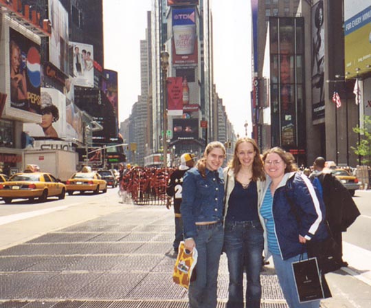 Look, it's a cheesy Times Square tourist picture! Hee! Erin, Jen, and me. :-)