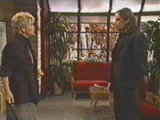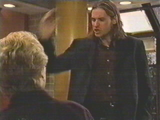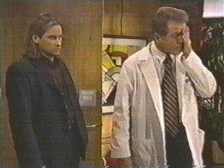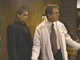 Vicki’s therapist, under Carlo’s direction, has been hypnotizing her to kill her son, Kevin. It finally comes to a head and Vicki could not pull the trigger. She is now at the hospital with Larry awaiting another doctor to help her in the aftermath of what has happened. Todd joins them. This scene really captures Todd’s caustic wit, how he loves making people think he is the bad guy and yet the same time he shows tremendous compassion to his sister. All during the scene with Larry, Todd is playing with him and being very sarcastic. Larry of course doesn’t understand his humor or why he’s really there, which is for his sister. But he has fun messing with Larry’s mind. When Larry leaves, although he plays a bit with Vicki, his tenderness shines through. And he is quite adamant at the end of the scene about the legacy of abuse and that it will end with he and his sister.