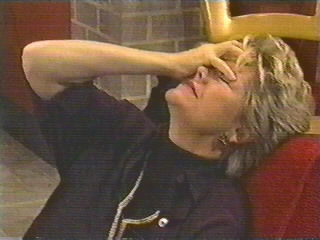 TODD: (comes bounding into the lounge) There you are. So is it true? I heard Annie Oakley got into a little bit of trouble. (she closes her eyes and sighs, at her brothers humor)