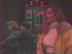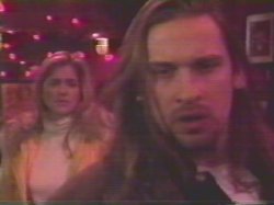 This is very early in Todd and Blair’s relationship when they are friends and they are just starting to get to know each other. There is tons of sexual innuendo written at the very beginning of this and I think this was very rare for Todd to play along, and show the sexy side of him. RH positively smolders. Todd comes into Rodi’s and orders a beer at the bar. Todd has had a very bad day and Blair just got stood up for Cord who was going sledding with Tina and the kids. Blair comes up behind him, she has an agenda.
