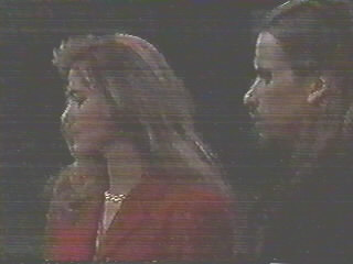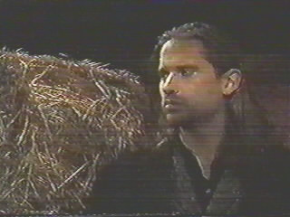 BLAIR: Oh, my god! It’s gorgeous! Pure Arabian! Omar Shariff has nothing, on you handsome, I believe you’re the most beautiful thing I ever...(stable hand comes in warning her to be careful, that he is wild and not about to be ridden) Oh, I never met a horse I couldn’t handle, once you let him know you love him, trust you for life. (she pets and speaks softly and soothing to him) Yeah, hey beautiful. (camera shows Todd’s shoes and pans up to him lurking, listening to her)
