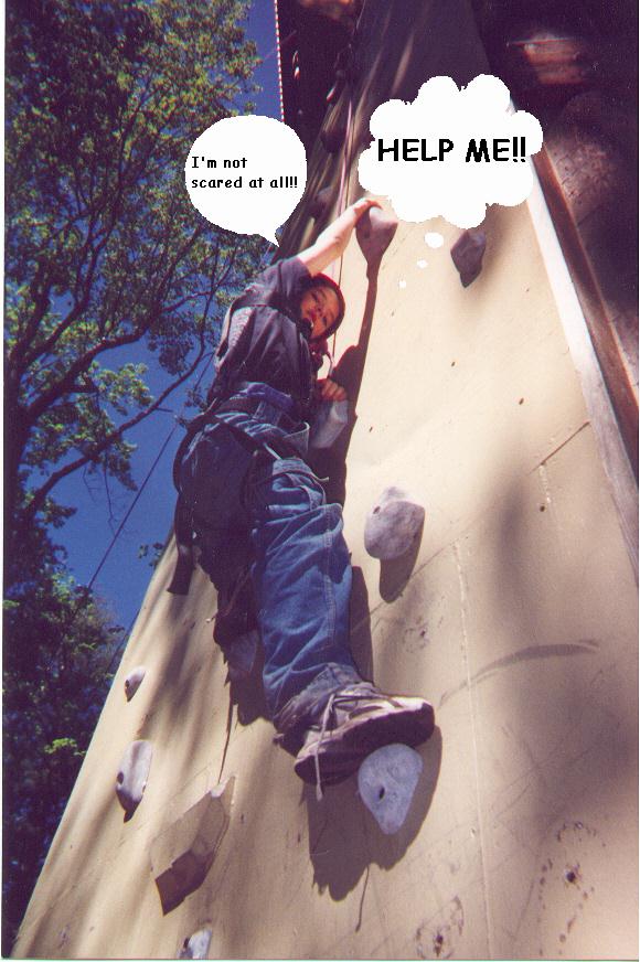 Here's me climbing the wall having brave thoughts....yeah, right!