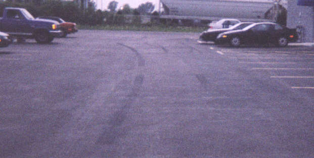 Here's a lil patch he left in his work parking lot. IT's a 95 footer and you can tell where he had to shift at. He could have went farther but started to run out of parking lot.