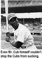 Fronted by superstars like Ernie Banks and Billy Williams, the Cubs finished with the worst record in team history. The highlight of the 1962 season was playing the first game ever in Houston against their new team, the Colt 45s (who later became the Astros). The Cubs lost, and there was a lot more where that came from. Early in the year the Cubs used 5 pitchers in the 8th inning of a 10-6 loss to Pittsburgh,