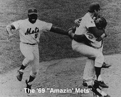 The Cubs were favorites to win the NL East in 1969. But the impossible happened. The Cubs were in 1st all year long, but out of nowhere came the New York Mets. By late August the Mets had snuck up on the Cubs and were 2 games back. On September 9 Tom Seaver gave the Cubs their 6th straight loss, giving the Mets a sweep of 2 games. New York now trailed the Cubs by one-half game. The very next day, Ken Boswell's 12th-inning single scores Cleon Jones, and the Mets beat the Expos 3-2 in the first game of a doubleheader. The win puts the Mets in the top spot for the first time in club history. The Cubs' loss drops them out of first after 155 days atop the NL. The Cubs continued to blow and finished the month of September with a 9-17 record. The Mets held on to first place and won the East. They went on to win the World Series.