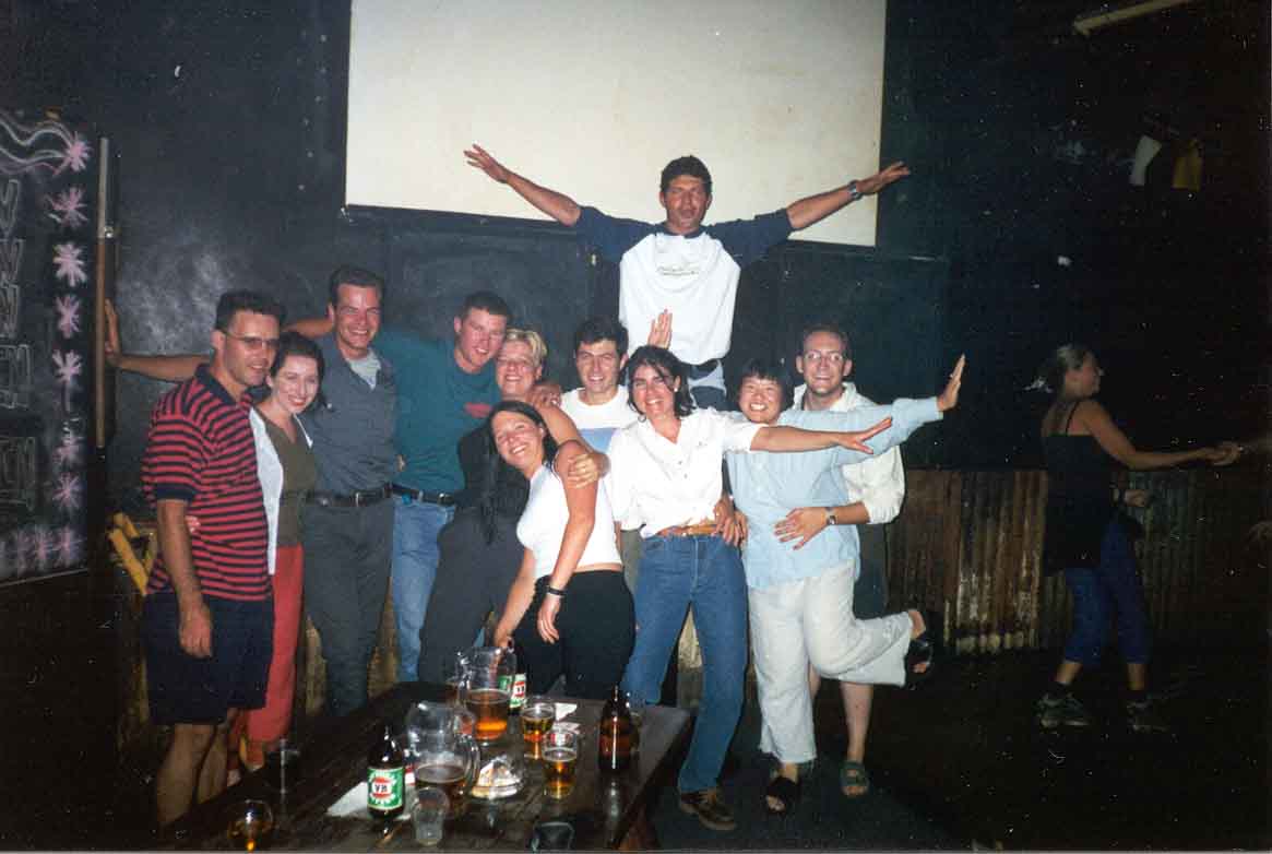 Celebrating with fellow campers at the Melanka Lodge
