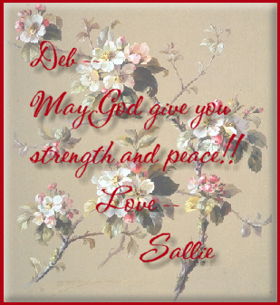 I have a very special blessing in my life, her name is Deb. Here you will find poems, beautiful thoughts, prayers and words from the Lord that she has passed along to others. It is my prayer that they will be a blessing to all who come here to visit.
