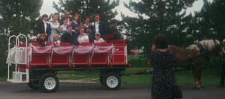 Here's a picture of the wedding party in the carriage that Mark and Dawn rode away in. That's Dawn's Grandpa at the reins.
