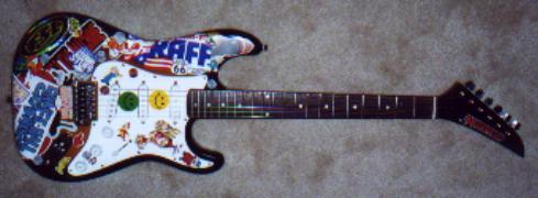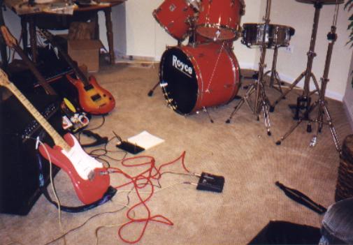 David plays a Calafornia style Fender Strat through a Peavy amp. He also has an old strat-style Lotus. For effects he uses a Zoom 505 pedal. He and Kyle share a Washburn XB-400 bass.