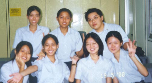 gosh......we realli look like factory workers rite?!! aniwae......this is our homeroom.........the ones sitting in front r wenhui aka beckham......mag......lijuan.....airong....n standing behind.......r baojin....noriahni....n me!!