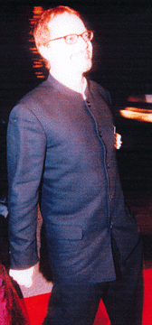 Burton: rumpled hair, black clothing, and not a smile in sight.