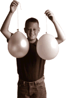 Try this activity with a friend. Blow up two balloons and tie each one to a string. Hold