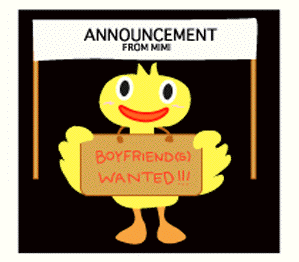 Mimi's looking for a boyfriend. If you know of any single ducks,fowl, or any animals attracted to someone like Mimi, e-mail us.