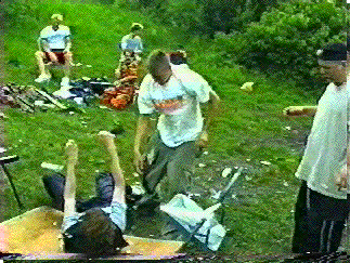 Outlaw sentons onto a crowd of MWHB wrestlers